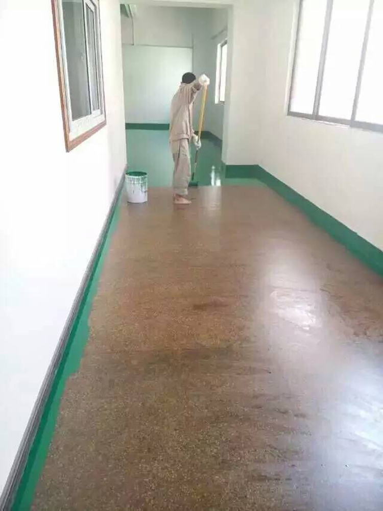 ⑴施工前將地面清理干凈。一般混凝土地面可用電磨,水磨石等宜打磨成毛面。2m靠尺不大于3mm,基面無積水及滲漏。針對油污多的地方,可用10-15%鹽酸洗刷,完后再用清水洗凈。將起殼、疏松等附著力不夠處要去除。